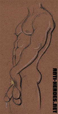 I did the original Jeveddo drawing in 2002 and only drew this nude rollover addendum a few days ago. He was always the most popular character of this series, so I expect his fans to eat this up (except for my friend who hates that I draw him uncut. Sorry Dug, I can’t see an elf circumcising.)