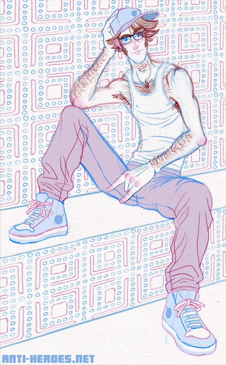 Here’s a new chara I’ve been drawing but don’t quite know if I’ll use him much now but maybe eventually! I love his MegaMan mohawk and chode!
